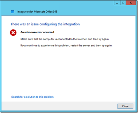 an unknown error occurred the system cannot find the file specified windows server 2012 r2 essentials microsoft office 365 integration