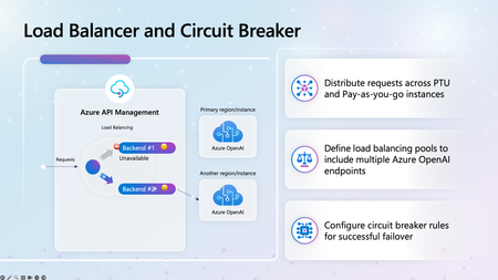 This article is part of a series of articles on Azure API Management and Generative AI. We believe that adding Azure API Management to your AI projects can help you scale your AI models, make them more secure and easier to manage. We previously covered the hidden risks of AI APIs in today's AI-driven technological landscape. In this article, we dive deeper into one of the supported Gen AI policies in API Management, which allows your applications to change the effective Gen AI backend based on unexpected and specified events. In Azure API Management, you can set up your different LLMs as backends and define structures to route requests to prioritized backends and add automatic circuit breaker rules to protect backends from too many requests. Under normal conditions, if your Azure OpenAI service fails, users of your application will continue to receive error messages, an experience that will persist until the backend issue is resolved and becomes ready to serve requests again. Similarly, managing multiple Azure OpenAI resources can be cumbersome, as manual URL changes are required in your API settings to switch between backend entities. This approach lacks efficiency and does not account for dynamic user conditions, preventing seamless switching to the optimal backend services for enhanced performance and reliability. How load balancing will work First configure your Azure OpenAI resources as referenceable backends, defining the base-url and assign a backend-id. As an example, let's assume we have three different Azure OpenAI resources as follows: To set up load balancing across the backends, you can either use one of supported approaches/ strategies or a combination of two to ensure optimal use of your Azure OpenAI resources. 1. Round Robin As the name suggests, API Management will evenly distribute requests to the available backends in the pool. 2. Priority-based For this approach, you organize multiple backends into priority groups, and API Management will follow and assign requests to these backends in order of priority. Back to our example, we are going to assign openai1 the top priority (priority 1), assign openai2 to priority 2 and add openai3 with priority 3 This will mean that requests will be forwarded to openai1 (priority 1), but if the service is unreachable, the calls will reroute to hit openai2 defined in the next priority group and so on. 3. Weighted Here, you assign weights to your backends, and requests will be distributed based on these relative weights. For our example above, we want to be even more specific by saying that while all requests default to openai1, in the event of its failure, we now want requests to be equally distributed to our priority 2 backends (specified by the 50/50 weight allocation) Now, configure your circuit breaker rules The next step is to define rules to that listen to the events in your API, and trip when specified conditions are met. Let's look at the example below to learn more about how this works. Inside your CircuitBreaker property configuration, you define an array that can hold multiple rules This section defines the conditions that must be met for the circuit breaker to trip. a. The circuit breaker will trip if there is at least one failure b. The number of failures specified in count will be monitored within 5-minute intervals c. We are looking out for errors that return a status code of 429 (Too Many Requests), and you can define a range of codes here The circuit will remain tripped for 1 minute, after which it will reset and route traffic to the endpoint Alright, so what should be my next steps? This article just introduced you to one of the many Generative AI supported capabilities in Azure API Management. We have more policies that you can use to better manage your AI APIs, covered in other articles in this series. Do check them out. Do you have any resources I can look at in the meantime to learn more? Absolutely! Check out: - https://learn.microsoft.com/en-us/azure/api-management/set-backend-service-policy https://learn.microsoft.com/en-us/azure/api-management/backends?tabs=bicep https://github.com/Azure-Samples/AI-Gateway/tree/main/labs/backend-pool-load-balancingAnnouncing: Azure API Center Hands-on Workshop 🚀