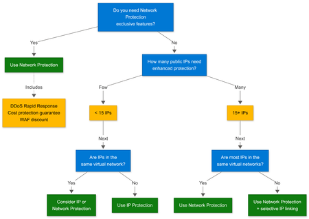 Introduction Azure provides infrastructure-level DDoS protection by default to protect Azure’s own platform and services. However, this protection does not extend to customer workloads or non-Microsoft managed resources like Application Gateway, Azure Firewall, or virtual machines with public IPs. To protect these resources, Azure offers enhanced DDoS protection capabilities (Network Protection and IP Protection) that customers can apply based on workload exposure and business requirements. As environments scale, it’s important to ensure these capabilities are applied deliberately and aligned with actual risk. For more details on how Azure DDoS protection works, see Understanding Azure DDoS Protection: A Closer Look. Why Cost Optimization Matters Cost inefficiencies related to Azure DDoS Protection typically emerge as environments scale: New public IPs are introduced Virtual networks evolve Workloads change ownership Protection scope grows without clear alignment to workload exposure The goal here is deliberate, consistent application of enhanced protection matched to real risk rather than historical defaults. Scoping Enhanced Protection Customer workloads with public IPs require enhanced DDoS protection to be protected against targeted attacks. Enhanced DDoS protection provides: Advanced mitigation capabilities Detailed telemetry and attack insights Mitigation tuned to specific traffic patterns Dedicated support for customer workloads When to apply enhanced protection: Workload Type Enhanced Protection Recommended? Internet-facing production apps with direct customer impact Yes Business-critical systems with compliance requirements Yes Internal-only workloads behind private endpoints Typically not needed Development/test environments Evaluate based on exposure Best Practice: Regularly review public IP exposure and workload criticality to ensure enhanced protection aligns with current needs. Understanding Azure DDoS Protection SKUs Azure offers two ways to apply enhanced DDoS protection: DDoS Network Protection and DDoS IP Protection. Both provide DDoS protection for customer workloads. Comparison Table Feature DDoS Network Protection DDoS IP Protection Scope Virtual network level Individual public IP Pricing model Fixed base + overage per IP Per protected IP Included IPs 100 public IPs N/A DDoS Rapid Response (DRR) Included Not available Cost protection guarantee Included Not available WAF discount Included Not available Best for Production environments with many public IPs Selective protection for specific endpoints Management Centralized Granular Cost efficiency Lower per-IP cost at scale (100+ IPs) Lower total cost for few IPs (< 15) DDoS Network Protection DDoS Network Protection can be applied in two ways: VNet-level protection: Associate a DDoS Protection Plan with virtual networks, and all public IPs within those VNets receive enhanced protection Selective IP linking: Link specific public IPs directly to a DDoS Protection Plan without enabling protection for the entire VNet This flexibility allows you to protect entire production VNets while also selectively adding individual IPs from other environments to the same plan. For more details on selective IP linking, see Optimizing DDoS Protection Costs: Adding IPs to Existing DDoS Protection Plans. Ideal for: - Production environments with multiple internet-facing workloads - Mixed environments where some VNets need full coverage and others need selective protection - Scenarios requiring centralized visibility, management, and access to DRR, cost protection, and WAF discounts DDoS IP Protection DDoS IP Protection allows enhanced protection to be applied directly to individual public IPs, with per-IP billing. This is a standalone option that does not require a DDoS Protection Plan. Ideal for: Environments with fewer than 15 IPs requiring protection Cases where DRR, cost protection, and WAF discounts are not needed Quick enablement without creating a protection plan Decision Tree: Choosing the Right SKU Now that you know the main scenarios, the decision tree below can help you determine which SKU best fits your environment based on feature requirements and scale: Network Protection exclusive features: DDoS Rapid Response (DRR): Access to Microsoft DDoS experts during active attacks Cost protection: Resource credits for scale-out costs incurred during attacks WAF discount: Reduced pricing on Azure Web Application Firewall Consolidating Protection Plans at Tenant Level A single DDoS Protection Plan can protect multiple virtual networks and subscriptions within a tenant. Each plan includes: Fixed monthly base cost 100 public IPs included Overage charges for additional IPs beyond the included threshold Cost Comparison Example Consider a customer with 130 public IPs requiring enhanced protection: Configuration Plans Base Cost Overage Total Monthly Cost Two separate plans 2 $2,944 × 2 = $5,888 $0 ~$5,888 Single consolidated plan 1 $2,944 30 IPs × $30 = $900 ~$3,844 Savings: ~$2,044/month ($24,528/year) by consolidating to a single plan. In both cases, the same public IPs receive the same enhanced protection. The cost difference is driven entirely by plan architecture. How to Consolidate Plans Use the PowerShell script below to list existing DDoS Protection Plans and associate virtual networks with a consolidated plan. Run this script from Azure Cloud Shell or a local PowerShell session with the [Az module](https://learn.microsoft.com/powershell/azure/install-azure-powershell) installed. The account running the script must have Network Contributor role (or equivalent) on the virtual networks being modified and Reader access to the DDoS Protection Plan. # List all DDoS Protection Plans in your tenant Get-AzDdosProtectionPlan | Select-Object Name, ResourceGroupName, Id # Associate a virtual network with an existing DDoS Protection Plan $ddosPlan = Get-AzDdosProtectionPlan -Name "ConsolidatedDDoSPlan" -ResourceGroupName "rg-security" $vnet