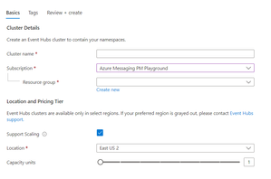 Since GA of Azure Event Hubs dedicated clusters 3 years ago, the service has been catering to high demand, critical workloads of customers. Dedicated Event Hubs clusters offer single tenant deployments with massive throughput and sub-second latencies. We wanted to empower our customers with the ability to scale the clusters at will with the announcement and public preview of Self-Serve Event Hubs cluster scaling experience Why Scaling? It is inevitable to run out of resource capacity during final hour needs. With dynamic loads across the systems, flexibility to scale resources at will becomes more important than ever. Generally, you can use CPU consumption metric under your dedicated cluster to understand when you’re required to scale. You can find more details here Here are a few use cases to consider: Scale out when you need it the most. Having the control on the capacity units that you own, provides confidence in ensuring that business goals are met even when the traffic becomes unpredictable. Scaling in when you don't use that much capacity so that it regulates the cost associated with the offering you use. You only pay for the higher capacity units for the time you scale out. Linear scaling ensures that you have as granular control as possible to ensure that you can choose the right capacity unit to fit your needs. As an example. If you are using 2 CU cluster and need one more unit, you don't need to move to 4 CU cluster and can safely scale to 3 CUs. Architectural changes for stability and scalability Scalable clusters stem out of different design and architecture paradigm, which allow them to have the ability to support scalability operations Since existing dedicated clusters were built on a different platform having its own architectural limits, they cannot cater to self-serve scaling functionalities. NOTE - Migrating from the existing (already provisioned) dedicated clusters to self-serve clusters is not possible due to the difference in underlying architectural paradigms How to scale dedicated clusters? To use the scalability feature of Event Hubs, you would need to check "Support Scaling" checkbox during Event Hubs cluster creation. Go to “Scale” tab located in option tree on Event Hubs Cluster UI: Clicking on the “Scale” tab would lead you to a slider, which can be used to scale out/ scale-in to desired number of CUs as per your needs Another way to scale would be to click on “Capacity” property on essentials pane on event hub cluster UI. This would lead you to slider as shown above which you can use to scale out/ scale in. Supported regions Since self-serve scaling experience is in public preview stage, it is currently supported to create clusters in limited regions for now (Asia East, South Central US, US West). Please check create cluster experience on Azure Portal to find out the newly added supported regions in future. Know more To know more about Azure Event hubs Dedicated clusters: Overview of Azure Event Hubs dedicated tier - Azure Event Hubs | Microsoft Docs How to create a dedicated cluster on your own: Create an Event Hubs dedicated cluster using the Azure portal - Azure Event Hubs | Microsoft Docs7.3KViews2likes0Comments