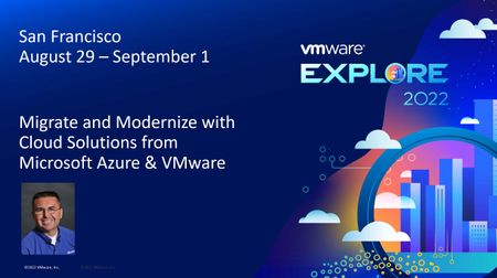 A couple of BIG changes this year... We are back to meeting in-person, and VMworld is now called VMware Explore! After two years of virtual meetings this conference is going to be super busy with lots to see and learn. If you want to know about Azure, the work we are doing with VMware, or just have a great conversation, don’t be shy and reach out to say hello. We'd love to talk to you so stop by our booth! We may even have some cool stickers too. This year we will have a bunch of sessions with Microsoft employees on stage, so if you're building out your schedule check them out: Microsoft Keynote: Transform your VMware Workloads with Microsoft Azure Speaker: Jeff Woolsey, Principal PM Manager, Microsoft Date/Time: Wednesday, August 31 @ 9:30 AM - 10:30 AM PDT Jeff will share how customers can transform their on-prem VMware environments using Microsoft Azure. Keynote attendees will learn how to: Address end of support for vSphere, Windows Server, and SQL Server Use familiar VMware skills to migrate or extend your VMware environment to the cloud, including hybrid cloud options with Azure VMware Solution and Azure Arc Modernize hybrid work with Azure Virtual Desktop and Horizon Cloud Give developers the tools they need with Azure Spring Apps In addition, here are some other Microsoft Azure-related sessions that we highly recommend for learning more about Azure + VMware: Day, Time, Topic Session Title Monday, August 29 11:15am-12:45pm Azure VMware Solution Instructor-led HOL: Learn How to Integrate Azure VMware Solution with Native Azure Services Tuesday, August 30 11:30-12:00pm Azure VMware Solution, Azure Virtual Desktop Answering Your Top Questions About Azure Hybrid, Windows Server, Reducing Costs & More… Tuesday, August 30 12:30-1:30pm Azure VMware Solution Azure VMware Solution: Networking and Security in a Hybrid Cloud Environment Tuesday, August 30 1:00-1:45pm Horizon Cloud on Azure Horizon Cloud Service on Microsoft Azure: Nuts and Bolts Tuesday, August 30 2:00-2:30pm Azure VMware Solution “Ask Me Anything” with a Microsoft Azure VMware Solution Expert Tuesday, August 30 2:30-2:45pm Azure Arc + vSphere Secure, Develop and Innovate in Hybrid and Multi-Cloud Environments with Azure Tuesday, August 30 2:30-3:30pm Horizon Cloud on Azure LinkedIn’s VDI Journey from On-Premises to Horizon Cloud Service on Azure with Customer Success Tuesday, August 30 4:00-4:30pm Azure VMware Solution, Horizon Cloud Fireside Chat: The Sentara Healthcare Journey to the Cloud Tuesday, August 30 4:00-5:00pm Azure VMware Solution Migrate and Modernize With Cloud Solutions From Microsoft and Azure VMware Solution Tuesday, August 30 4:15-5:45pm Azure VMware Solution Instructor-led HOL: Learn How to Integrate Azure VMware Solution with Native Azure Services Wednesday, August 31 9:00-10:00am Azure VMware Solution What’s New in Azure VMware Solution Wednesday, August 31 9:30-10:30am Azure Spring Apps Building and Running Enterprise-Grade Spring Applications in the Cloud Wednesday, August 31 9:30-10:30am Microsoft Azure Microsoft Keynote: Transform your VMware Workloads with Microsoft Azure Wednesday, August 31 9:30-10:30am Azure VMware Solution Sentara Healthcare Uses Azure VMware Solution to Successfully Migrate to the Cloud Wednesday, August 31 11:00-12:00pm Azure VMware Solution Automating Azure VMware Solution Onboarding & Configure NVA Networking Demo Wednesday, August 31 12:00-12:30pm Azure VMware Solution “Ask Me Anything” with a Microsoft Azure VMware Solution Expert Wednesday, August 31 12:30-1:30pm Azure Arc Bring Azure to Your VMware vSphere Environments Wednesday, August 31 1:15-2:45pm Azure VMware Solution Instructor-led HOL: Learn How to Integrate Azure VMware Solution with Native Azure Services Wednesday, August 31 1:30-2:00pm Azure VMware Solution Healthcare in the Cloud Wednesday, August 31 2:00-2:15pm Azure VMware Solution Dell, VMware and Microsoft Facilitate Improved Agility for Munich Re Wednesday, August 31 2:00-3:00pm Azure Spring Apps Operate Enterprise-grade Spring Apps at Scale Wednesday, August 31 3:00-4:00pm Azure Virtual Desktop + Horizon on Azure The Endless Possibilities of VMware Horizon and Microsoft Azure Thursday, September 1 10:30-11:00am Azure VMware Solution “Ask Me Anything” with a Microsoft Azure VMware Solution Expert Thursday, September 1 11:30-12:30pm Horizon Cloud on Azure Next Generation Hybrid DaaS Architecture – What’s New with Horizon CloudAzure VMware Solution Syslog Forwarder