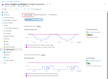 Continuing our commitment to open-source solutions, we are announcing the general availability of Azure Monitor dashboards with Grafana. This service offers a powerful solution for cloud-native monitoring and visualizing all your Azure data. Dashboards with Grafana enable you to create and edit Grafana dashboards directly in the Azure portal without additional cost and less administrative overhead compared to self-hosting Grafana or using managed Grafana services. Built-in Grafana controls and components allow you to apply a rich set of visualization panels and client-side transformations to Azure monitoring data to create custom dashboards. Start quickly with pre-built and community dashboards Dozens of pre-built Grafana dashboards for Azure Kubernetes Services, Application Insights, Storage Accounts, Cosmos DB, Azure PostgreSQL, OpenTelemetry metrics and dozens of other Azure resources are included and enabled by default. Additionally, you can import dashboards from thousands of publicly available Grafana community and open-source dashboards for the supported data sources: Prometheus, Azure Monitor (metrics, logs, traces, Azure Resource Graph), and Azure Data Explorer. Streamline monitoring with open-source compatibility and Azure enterprise capabilities Azure Monitor dashboards with Grafana are fully compatible with open-source Grafana dashboards and are portable across any Grafana instances regardless of where they are hosted. Furthermore, dashboards are native Azure resources supporting Azure RBAC to assign permissions, and automation via ARM and Bicep templates. Import, edit and create dashboards in 30+ Azure regions Choose from any language in the Azure Portal for your Grafana user interface Manage dashboard content as part of the ARM resource Automatically generate ARM templates to automate deployment and manage dashboards Take advantage of Grafana Explore and New Dashboards Leverage Grafana Explore to quickly create ad-hoc queries without modifying dashboards and add queries and visualizations to new or existing dashboards New out of the box dashboards for additional Azure resources: Additional Azure Kubernetes Service support including AKS Automatic and AKS Arc connected clusters Azure Container Apps monitoring dashboards Microsoft Foundry monitoring dashboards Azure Monitor Application Insights dashboards OpenTelemetry metrics Microsoft Agent Framework High Performance Computing dashboards with dedicated GPU monitoring When to step up to Azure Managed Grafana? If you store your telemetry data in Azure, Dashboards with Grafana in the Azure portal is a great way to get started with Grafana. If you have additional 3rd-party data sources, or need full enterprise capabilities in Grafana, you can choose to upgrade to Azure Managed Grafana, a fully managed hosted service for the Grafana Enterprise software. See a detailed solution comparison of Dashboards with Grafana and Azure Managed Grafana here. Get started with Azure Monitor dashboards with Grafana today.762Views3likes0CommentsPublic Preview: Metrics usage insights for Azure Monitor Workspace
