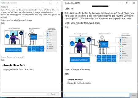 Recently, we have seen a lot of chatbots. For example FAQ bots and navigation bots and more. If the app users are looking for how to use the app, then chatbot UI is a good way for asking about apps. You can create a FAQ bot using Azure Bot Service and QnA Maker. It is straightforward. The following document explains how to create QA bots. Use QnA Maker to answer questions If you want to integrate a bot feature in your app, then you can use DirectLine APIs. You can use it add Microsoft.Bot.Connector.DirectLine package using NuGet. How to use DirectLine? At first, you create a DirectLineClient instance. var directLineClient = new DirectLineClient("here is key that is got from Bot Channels Registration"); Next, start a conversation. var conversation = await directLineClient.Conversations.StartConversationAsync(); You can send a message to bot using the conversation id. await directLineClient.Conversations.PostActivityAsync(conversation.ConversationId, new Activity { From = new ChannelAccount("User id"), Text = "a message send to bot", Type = ActivityTypes.Message, }); And you can also get messages from the bot. string watermark = null; while(true) { var activitySet = await directLineClient.Conversations.GetActivitiesAsync(conversation.ConversationId, watermark); watermark = activitySet.Watermark; var botMessages = activitySet.Activities.Where(x => x.From.Id == "bot id"); foreach (var message in botMessages) { // process a message that is from the bot } await Task.Delay(2000); } It's very simple and easy. How to display rich contents? The bots that are created by Azure Bot Service send some rich contents like image contents ,and cards contents(hero cards, adaptive cards) ,and more. If you want to support those contents, then you can use AdaptiveCards Renderer. For WPF package For UWP package If you detect rich contents in attachments of the message, then convert it to an AdaptiveCard instance, and then you can render it using AdaptiveCards Renderer. The convert logic is like below: private IEnumerable<AdaptiveCard> ConvertAttachmentsToAdaptiveCard(IEnumerable<Attachment> attachments) { AdaptiveCard parseHeroCard(string json) { var heroCard = JsonConvert.DeserializeObject<HeroCard>(json); return new AdaptiveCard("1.0") { Body = new List<AdaptiveElement> { new AdaptiveTextBlock(heroCard.Title) { Size = AdaptiveTextSize.Medium, Weight = AdaptiveTextWeight.Bolder, }, new AdaptiveTextBlock(heroCard.Text), }, }; } return attachments?.Select(x => x.ContentType switch { "application/vnd.microsoft.card.hero" => parseHeroCard(x.Content.ToString()), "image/png" => new AdaptiveCard("1.0") { Body = new List<AdaptiveElement> { new AdaptiveImage(x.ContentUrl), } }, _ => null, }) ?.Where(x => x != null); } The rendering logic is like following code: // The code for UWP var renderer = new AdaptiveCardRenderer(); var adaptiveCard = ... // Get an AdaptiveCards.AdaptiveCard instance var renderedCard = renderer.RenderAdaptiveCard(AdaptiveCard.FromJsonString(adaptiveCard.ToJson())); renderedCard.FrameworkElement; // get result The sample program The following repository is a sample app to render simple text messages, Hero cards and images. https://github.com/runceel/DirectLineClient5.7KViews1like1CommentBuild your first Alexa skill with Alexa.NET and Azure Functions - The certification