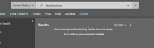 Hi. I have what looks to be a software issue on E:\ drive, but when I contacted Microsoft live chat support they are saying it looks more like a hardware problem, but the error says it's about either a missing App, or an association problem. I can't attach a screenshot, or copy/paste, but this is the error that shows:- E:\ This file does not have an app associated with it for performing this action. Please install an app or, if one is already installed, create an association in the Default Apps Settings page. I don't have a clue what this means, or even where to look. It's a fairly new system, I only got it in Feb this year. This has only just very recently started happening. I am getting the attached error whenever I use either an SD card reader, or the External drive. I've tried several different cards, and different readers, in most of my USB ports. This makes using any external drive a bit glitchy. Is there any way that anyone can help, or any suggestions where to look? I really need this drive working properly. Thanks. Steve.15Views0likes0CommentsMicrosoft Outlook (classic) search suddenly not working