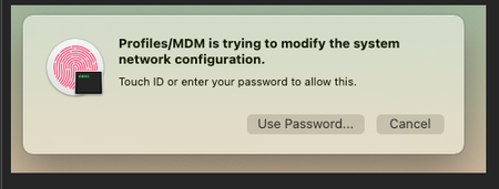 Hey We're trying to use intune for our mostly catalina and Bigsur macos fleet, and we're noticing on multiple peoples machines that they'll get regular popups mentioning they need to approve Profiles/MDM. Even after using their finger/password to approve the changes, they'll get new pop ups. I don't see any mention in the system.log regarding this popup. If I look in the Intune MDM logs the only regular errors that i see are regarding a "microsoft.com requires a client cert" but i'm not sure if this is related. NSLocalizedDescription=The Internet connection appears to be offline., NSErrorFailingURLStringKey=https://manage.microsoft.com/RestUserAuthLocationService/RestUserAuthLocationService/Certificate/ServiceAddresses, NSErrorFailingURLKey=https://manage.microsoft.com/RestUserAuthLocationService/RestUserAuthLocationService/Certificate/ServiceAddresses, _kCFStreamErrorDomainKey=1}) error 1: authenticationError(Error Domain=NSURLErrorDomain Code=-1206 "The server “manage.microsoft.us” requires a client certificate." UserInfo={NSLocalizedDescription=The server “manage.microsoft.us” requires a client certificate., NSErrorFailingURLStringKey=https://manage.microsoft.us/RestUserAuthLocationService/RestUserAuthLocationService/Certificate/ServiceAddresses, NSErrorFailingURLKey=https://manage.microsoft.us/RestUserAuthLocationService/RestUserAuthLocationService/Certificate/ServiceAddresses, _NSURLErrorRelatedURLSessionTaskErrorKey=( _NSURLErrorFailingURLSessionTaskErrorKey=LocalDataTask <####.>.<####>, NSUnderlyingError=0x7fe4e552daf0 {Error Domain=kCFErrorDomainCFNetwork Code=-1206 "(null)" UserInfo={NSErrorPeerAddressKey=<CFData 0x7fe4e565bb30 [0x7fff807deb70]>{length = 16, capacity = 16, bytes = 0x100201bb17610d070000000000000000}}}}) error 5: authenticationError(Error Domain=NSURLErrorDomain Code=-1206 "The server “manage-selfhost.microsoft.com” requires a client certificate." UserInfo={NSLocalizedDescription=The server “manage-selfhost.microsoft.com” requires a client certificate., NSErrorFailingURLStringKey=https://manage-selfhost.microsoft.com/RestUserAuthLocationService/RestUserAuthLocationService/Certificate/ServiceAddresses, NSErrorFailingURLKey=https://manage-selfhost.microsoft.com/RestUserAuthLocationService/RestUserAuthLocationService/Certificate/ServiceAddresses, _NSURLErrorRelatedURLSessionTaskErrorKey=(5.9KViews0likes2CommentsAllow non-admins to install apps from Company Portal