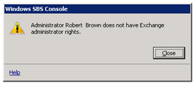 First published on TechNet on May 27, 2009 [Today's post comes to us courtesy of Kim Oehmichen] We have recently seen a few cases where creating a new user with the Add a New User Account wizard from the SBS Console does not create the respective Exchange 2007 mailbox.Error "Administrator Does Not Have Exchange Administrator Rights" When Creating or Deleting User in SBS 2008 Console