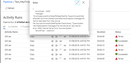 I have an activity that makes HTTP request to Azure functions app. Function does some processing and returns the result after that. Processing can last up to 15 minutes. But Data Factory activity fails with error "The remote server returned an error: (500) Internal Server Error" if request time is more than 225 seconds even if "Request timeout" property is set to 30 min and Azure function shows that it ran successfully . It doesn't depend on destination connector(tried Azure SQL DB, Data Lake Store etc). Are there any undocumented timeouts or tricks to avoid this?3KViews4likes1CommentAzure Storage Account Larger File Shares