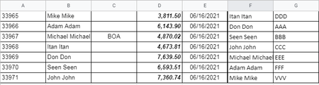 Hello, I have column A to G. In the column B were listed first and the last names in alphabetical order. In the column F the same first and the last names from column B were listed without any order. Column C is empty. Column G have data related to the column F. What I need? I need the name from column B to be recognized from column F and the data from column G to be automatically assigned to the column C. Please see the screenshot below. From the screenshots: B1 to be recognized from F (in this case F7) and G7 to be automatically added to C1. B2 to be recognized as F6 and G6 to be automatically added to C2. The most important is data from column B to be recognized in F if that is possible. Any help is much appreciated. Thank you!Solved2.6KViews2likes5CommentsMaps Data for Scotland