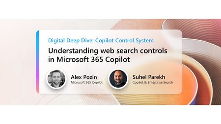 Discover how to securely build agents with Microsoft Copilot Studio and Agent Builder using Power Platform Admin Center, Microsoft Purview, and Microsoft Admin Center capabilities. This session explores best practices for managing data access, compliance, and risk mitigation while ensuring responsible AI use. Learn how to: enforce policies safeguard enterprise data gain insights into securing agents in Microsoft 365 Copilot or Copilot Chat at scale maintain agility and innovation How do I participate? No registration is required. Select "Add to calendar" to save the date, select "Attend" to receive event reminders, then join us live on June 17th ready to learn and ask questions! Feel free to post questions and comments below. You can post during the live session and/or in advance if the timing doesn't work for you. Access session presentations Looking for session materials or presentations? Visit the new Copilot Control System page on AMC to download resources and explore more content from the event. This session is part of the Digital Deep Dive: Copilot Control System (CCS). Add it to your calendar, select "Attend" for event reminders, and check out the other sessions! Each session has its own page where the session livestream and discussion space will be available at the start time. You will also be able to view sessions on demand after the event.2.6KViews3likes12CommentsUnderstanding web search controls in Microsoft 365 Copilot
