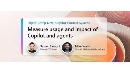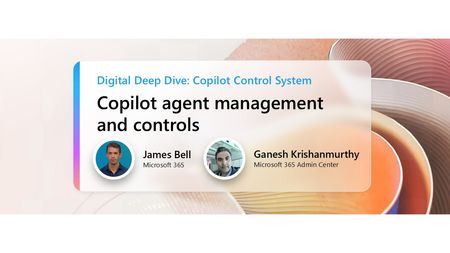 Join us to explore how Copilot Analytics empowers adoption specialists, IT admins, and leaders to effectively measure usage, adoption, and the impact of Copilot and agents. Learn about the tools and best practices that can make AI an integral part of your organization's daily work patterns. This session will showcase the latest product experiences and upcoming investments designed to help you measure and maximize the value of AI investments in your organization. How do I participate? No registration is required. Select "Add to calendar" to save the date, select "Attend" to receive event reminders, then join us live on June 18th ready to learn and ask questions! Feel free to post questions and comments below. You can post during the live session and/or in advance if the timing doesn't work for you. Access session presentations Looking for session materials or presentations? Visit the new Copilot Control System page on AMC to download resources and explore more content from the event. This session is part of the Digital Deep Dive: Copilot Control System (CCS). Add it to your calendar, select "Attend" for event reminders, and check out the other sessions! Each session has its own page where the session livestream and discussion space will be available at the start time. You will also be able to view sessions on demand after the event.2.1KViews1like16CommentsCopilot agent management and controls