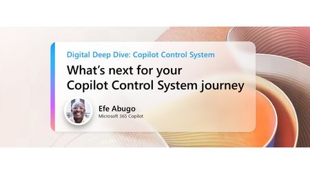 Start your Digital Deep Dive: Copilot Control System (CCS) experience with this kickoff session introducing CCS — a framework designed to help IT admins and business leaders secure data, manage Copilot and agent experiences, and measure adoption and impact. We’ll walk through the full two-day agenda, highlighting key sessions on security, governance, agent lifecycle, management controls, measurement, and user enablement. You’ll also learn how to: Engage with our experts during live AMAs Find resources to continue your CCS journey after the event How do I participate? No registration is required. Select "Add to calendar" to save the date, select "Attend" to receive event reminders, then join us live on June 17th ready to learn and ask questions! Feel free to post questions and comments below. You can post during the live session and/or in advance if the timing doesn't work for you. Access session presentations Looking for session materials or presentations? Visit the new Copilot Control System page on AMC to download resources and explore more content from the event. This session is part of the Digital Deep Dive: Copilot Control System (CCS). Add it to your calendar, select "Attend" for event reminders, and check out the other sessions! Each session has its own page where the session livestream and discussion space will be available at the start time. You will also be able to view sessions on demand after the event.9.6KViews4likes8CommentsThat’s a wrap! What’s next for your Copilot Control System journey