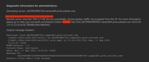 Hi all, I am posting this to the Canon forums and Microsoft Outlook forums. I have a co-worker that whenever they use our network attached Canon ImageCLASS MF247dw using scan-to-email on the printer itself, his scanned image emails come with the wrong time stamp, they are dated one hour back. This also happens for a couple other co-workers. I am 99% sure i have compared Outlook settings including timezone settings, and the Canon MF247dw address book settings across the users it works for and does not work for and as far as i see they all match. Everyone is set to the same time zone, checked settings across Outlook and the Windows 10 machines. For the life of me i cannot figure out why some co-workers scan-to-email comes through Outlook as correct time stamp, and some say they are one hour behind. I have also checked the settings for day light savings. We all use the same Windows 10 version, same Outlook versions. Any thoughts or tips?1.5KViews0likes1CommentHow resolve 'Remote server returned '550 5.7.708 Service unavailable.' error while send an email
