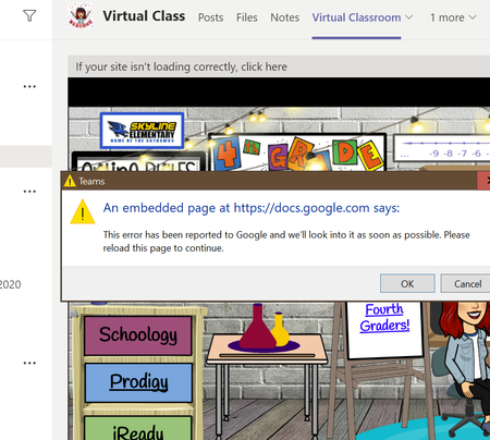 I have embedded a google slide in Microsoft teams and it was working correctly until yesterday. Now anytime I click on one of the links this error message pops up: If you press OK or Cancel, the link still works and an internet window pops up and you are taken to the link. However, it is confusing for students. How do I get rid of this error code? THANKS!6.2KViews0likes1Comment