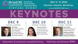 This blog is The Microsoft Ignite ‘ODSPV Guide’ loaded with information about SharePoint, OneDrive, Viva, Lists, Syntex, Office, Planner, Stream, and Visio - highlighting relevant keynotes, breakout sessions, on-demand sessions, a post-Ignite event, and more – to help you navigate this subset of content within the whole of Ignite (Nov.2-4.2021). We’ll keep it up to date – before, during and after Ignite.38KViews9likes6CommentsMicrosoft 365 Collaboration Conference – keynotes, sessions, and workshops