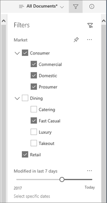 I have created a calendar where customers can reserve time with me and my team for various meetings. I've created 2 overlays - 1 to show green when I have an open slot, 1 to show red when our time has been reserved. I cannot get the overlays to function properly. I know it has something to do with the proper filter settings, but I haven't found the right combination to make it work properly. Basically, anything with text other than "OPEN SLOT" should be in Red, while OPEN SLOTs should be in Green.856Views0likes0CommentsMuli-level filter panel on document library not working
