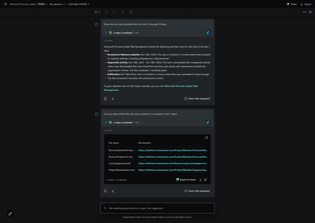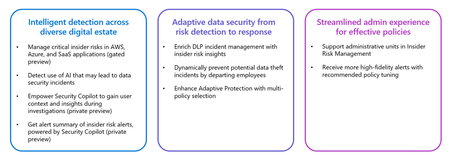 We are pleased to announce the integration of Copilot for Microsoft 365, which introduces an advanced level of detection within Communication Compliance. This groundbreaking feature empowers organizations to identify risky communication not just in ordinary channels but also within prompted and response content within Copilot for Microsoft 365. As the digital landscape evolves, it’s crucial to maintain control and oversight over your communication platforms. In an illustrative scenario, an investigator, equipped with designated permissions, can meticulously examine Copilot interactions across various Microsoft applications, including Outlook, Word, PowerPoint, Excel, Teams, OneNote, and Whiteboard. the Communication Compliance investigator can see that Adele used Copilot to enquire about the top-secret project - ‘Project Dragon’ for personal financial gain, which violates her organization’s policy, showcasing the precision and effectiveness of this feature. This includes the ability to identify specific patterns in both prompts and responses, such as keywords, sensitive information types like social security and credit card numbers, and matches in trainable classifiers, further enhancing security and compliance efforts. With the ability to select Copilot chats as a checked location in the policy creation wizard, customer administrators now have a powerful tool to ensure that potentially inappropriate or confidential data risks are effectively mitigated. Read the full blog here: Unleash the Future of Communication Compliance at Microsoft Ignite 2023 - Microsoft Community Hub573Views0likes0CommentsEmpower data security teams to proactively manage critical insider risks across diverse digital esta
