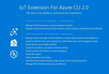 Hello everybody, I'm totally new the cloud computing services. I have the question, what is the best way to connect a hardware device to cloud service? Knowing that: 1- this device can connect over tcp ( if not possible, what should it can ?) 2- i need to receive the data sent from this device in webapi or tcp service on a VM to analyse and save those data. I was thinking about IOT hub but am not really sure if this is the correct solution to do that. Hope you can help me ... Thank you in advanced2.6KViews0likes5CommentsAnnouncing IoT extension for Azure CLI 2.0
