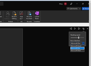 - New natural sounding voice in Read aloud(Male, Female) missing?We are using Microsoft 365, and switched to 2201 Current Channel version of Office apps for us to test the Read aloud feature in Word, but it's not showing. It should be available starting from 2109 Current channel version according here: https://insider.office.com/en-us/blog/new-natural-sounding-voices-come-to-read-aloud Has this feature been pulled out, or do we need to download those voices? It should be like this I suppose but it's not. Your inputs are highly appreciated. Thank you!2.9KViews0likes2Comments