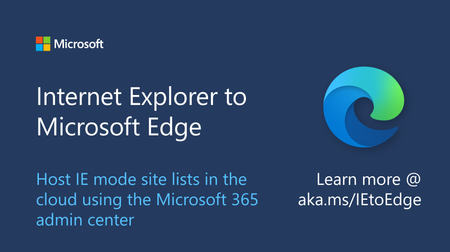 Most RecentMost ViewedMost LikesInternet Explorer 11 desktop app retirement FAQ Get answers to common questions about the retirement of the IE11 desktop app for certain versions of Windows 10. Host IE mode site lists in the cloud The Cloud Site List Management experience allows you to host your IE mode site list in an authenticated cloud endpoint. Control IE retirement on your own schedule with the Disable IE Policy Control the timing and rollout of the IE retirement process in your organization with the Disable IE Policy. The dual engine advantage of Internet Explorer Mode Get a closer look at what’s going on with IE mode under the hood and a sneak peek at the enhancements to come. New testing tools to help prepare for IE retirement Learn about automated browser testing with Selenium’s IE Driver and how to avoid common issues when setting up IE mode. Don’t wait for June 15th! Set your own IE retirement date. Learn why the best way to prepare for Internet Explorer disablement after June 15th is to proactively retire IE before June 15. Modernize security with Microsoft Edge and IE mode Rely on IE mode for modern security protection for vulnerable legacy apps. Proven tools to accelerate your move to Microsoft Edge Get tips! This is the first in a series of posts designed to help you move from Internet Explorer 11 to Microsoft Edge. Windows & Devices at Microsoft Ignite 2021: March edition A guide to all things Windows & Devices at Microsoft Ignite, March 2-4, 2021! Microsoft Edge feature coming to Microsoft 365 admin center Send Microsoft Edge promotional emails through a new feature in the Setup page.