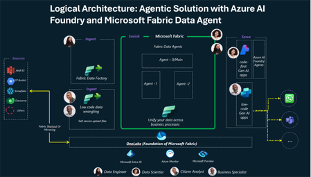 Contributors for this blogpost: Jeet J & Ritaja S Context & Objective Over the past year, Gen AI apps have expanded significantly across enterprises. The agentic AI era is here, and the Microsoft ecosystem helps enable end-to-end acceleration of agentic AI apps in production. In this blog, we'll cover how both low-code business analysts and pro-code developers can use the Microsoft stack to build reusable agentic apps for their organizations. Professionals in the Microsoft ecosystem are starting to build advanced agentic generative AI solutions using Microsoft AI Services and Azure AI Foundry, which supports both open source and industry models. Combined with the advancements in Microsoft Fabric, these tools enable robust, industry-specific applications. This blog post explains how to develop multi-agent solutions for various industries using Azure AI Foundry, Copilot Studio, and Fabric. Disclaimer: This blogpost is for educational purposes only and walks through the process of using the relevant services without ton of custom code; teams must follow engineering best practices—including development, automated deployment, testing, security, and responsible AI—before any production deployment. What to expect In-Focus: Our goal is to help the reader explore specific industry use cases and understand the concept of building multi-agent solutions. In our case, we will focus on the insurance and financial services use case, use Fabric Notebooks to create sample (fake) datasets, utilize simple click-through based workflow to build-and-configure three agents (both on Fabric and Azure AI Foundry), tie them together and offer the solution via Teams or Microsoft Copilot using the new M365 Agents Toolkit. Out-of-Focus: This blog post will not cover the fundamentals of Azure AI Services, Azure AI Foundry, or the various components of Microsoft Fabric. It also won’t cover the different ways (low-code or pro-code) to build agents, orchestration frameworks (Semantic Kernel, Langchain, AutoGen, etc.) for orchestrating the agents, or hosting options (Azure App Service – Web App, Azure Kubernetes Service, Azure Container Apps, Azure Functions ). Please review the pointers listed towards the end to gain a holistic understanding of building and deploying mission-critical generative AI solutions. Logical Architecture of Multi-Agent Solution utilizing Microsoft Fabric Data Agent and Azure AI Foundry Agent. Fabric & Azure AI Foundry – Pro-code Agentic path Prerequisites a. Access to Azure Tenant & Subscription b. Work with Azure tenant administrator to have appropriate Azure Roles and Capacity to provision Azure Resources (services) and Deploy AI Models in certain regions. c. A paid F2 or higher Fabric capacity resource – Important to note that the Fabric compute capacity can be paused and resumed. Pause in case you wish to save costs after your learning. d. Access Fabric Admin Portal Power BI for enabling these settings > Fabric data agent tenant settings is enabled. > Copilot tenant switch is enabled. > Optional: Cross-geo processing for AI is enabled. (depends on your region and data sovereignty requirements) > Optional: Cross-geo storing for AI is enabled. (depends on your region) e. At least one of these: Fabric Data Warehouse, Fabric Lakehouse, one or more Power BI semantic models, or a KQL database with data. This blog post will cover how to create sample datasets using Fabric Notebooks. f. Power BI semantic models via XMLA endpoints tenant switch is enabled for Power BI semantic model data sources. Walkthrough/Set-up One-time setup for Fabric Workspace and all agents a) Visit https://app.powerbi.com Click “New workspace” button to create a new workspace, give it a name and ensure that it is tied/associated to the Fabric Capacity you have provisioned. b) Click Workspace settings of the newly created Workspace c) Review the information in License info. If the workspace isn’t associated with your newly created Fabric Capacity, please do the proper association (link the Fabric capacity to the workspace) and wait for 5-10 mins. 2. Create an Insurance Agent a) Create a new Lakehouse in your Fabric Workspace. Change the name to InsuranceLakehouse b) Create a new Fabric Notebook, assign a name, and associate the Insurance Lakehouse with it. c) Add the following Pyspark (Python) code-snippets in the Notebook. i) Faker library for Fabric Notebook ii) Insurance Sample Dataset in Fabric Notebook iii) Run both cells to generate the sample Insurance dataset. d) Create a new Fabric data agent, give it a name and add the Data Source (InsuranceLakehouse). i) Ensure that the Insurance Lakehouse is added as the data source in the Insurance Fabric data agent. ii) Click AI instructions button first to paste the sample instructions and finally the Publish button. iii) Paste the sample instructions in the field. A churn is represented by number 1. Calculate churn rate as : total number of churns (TC) / (TT) total count of churn entries. When asked to calculate churn for each policy type then TT should be total count of churn of that policy type e.g Life, legal. iv) Make sure to hit the Publish button. v) Capture two values from the URL and store them in secure/private place. We will use them to configure the knowledge source in Azure AI Foundry Agent. https://app.powerbi.com/groups/<WORKSPACE-ID>/aiskills/<ARTIFACT-ID>?experience=power-bi e) Create Azure AI Agent on Azure AI Foundry and use Fabric Data Agent as the Knowledge Source i) Visit https://ai.azure/com ii) Create new Azure AI Project and deploy gpt-4o-mini model (as an example model) in the region where the model is available. iii) Create new Azure AI Foundry Agent by clicking the “New agent” button. Give it a name (for e.g. AgentforInsurance) iv) Paste the sample Instructions in the Azure AI Agent as follows Use Fabric data agent tool to answer questions related to Insurance data. Fabric data agent as a tool has access to insurance data tables: