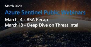 We are excited to announce the following Azure Sentinel webinars: March 31 | Azure Sentinel: Extending and Integrating Sentinel (APIs) Presenter: Preeti Krishna and Ofer Shezaf April 20 | Azure Sentinel: MSSP Support Presenter: Ofer Shezaf April 22 | Azure Sentinel: Threat Hunting on AWS using Sentinel Presenter: Ashwin Patil For details and registration go to aka.ms/SecurityWebinars.864Views0likes0CommentsFebruary 2020 | Azure Sentinel public webinars