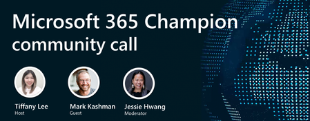 Join our next community call on March 25, 2025, to deep dive into the new features in SharePoint Pages and News, including flexible sections! Host: Tiffany Lee Guest: Katelyn Helms Moderator: Jessie Hwang 📢 NOTE: our community call format has changed to using Teams webinars to enable more dynamic discussions! Join link is still the same but you must register to be able to join the call when it starts: https://aka.ms/M365ChampionCallPM ⏰ 🗨️ Each call includes an open Q&A discussion section, where you'll have a chance to ask your questions about Microsoft 365. Our new call format will make this easier! 👋 Join the Microsoft 365 Champion program today! Champions combine technical acumen with people skills to drive meaningful change. Our community calls are open to everyone but only Champions have access to the presentation resources (access link in the initial welcome email and in the monthly newsletters). Join now: https://aka.ms/M365Champions. Note: If you are unable to watch the recording on YouTube, try watching it here.346Views0likes2CommentsMicrosoft 365 Champion community call | March 2025 | AM