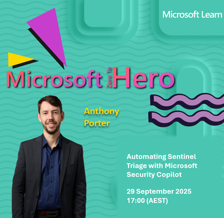 Automating Sentinel Triage with Microsoft Security Copilot 🤖🧠🛡️ We’re diving deep into the transformative world of AI-driven automation in cybersecurity. This session will explore how Microsoft Security Copilot, integrated with Logic Apps, can supercharge the triage process in Microsoft Sentinel. 💡 What you’ll take away: ✔️ Practical applications of AI in triage and incident response ✔️ How to reduce manual effort and operational costs ✔️ Innovative strategies to elevate efficiency in your SOC Join us as we explore how cutting-edge AI reshapes security operations and empowers teams to focus on what matters most. 🗓️ Date: 29 September 2025 ⏰ Time: 17:00 (AEST) 🎙️ Speaker: Anthony Porter 📌 Topic: Automating Sentinel Triage with Microsoft Security Copilot82Views1like1Comment