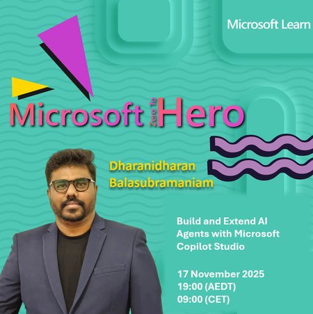 🚀 Old to Gold: How to Modernize Your Legacy ASP.NET Apps Gradually Still running legacy ASP.NET applications? You’re not alone and you don’t need to rebuild everything overnight! Join us for an insightful session where we’ll uncover how to incrementally modernize your apps using: 💡 YARP (Yet Another Reverse Proxy) – seamlessly route traffic between old and new components ⚙️ .NET Upgrade Assistant – simplify the migration process 🌿 The “Strangler Fig” pattern – evolve your legacy systems into modern ASP.NET Core solutions with minimal disruption You’ll walk away with practical guidance, real-world strategies, and the confidence to start your modernization journey, one step at a time. If your future involves .NET upgrades or cloud-ready architectures, this is a session you don’t want to miss! 🗓️ Date: 15 November 2025 ⏰ Time: 18:00 (CET) 🎙️ Speaker: Jonathan "J." Tower 📌 Topic: Old to Gold: How to Modernize Your Legacy ASP.NET Apps Gradually230Views0likes1CommentBuild and Extend AI Agents with Microsoft Copilot Studio