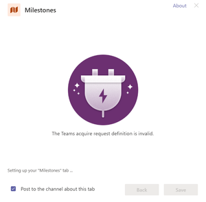 Hi I am trying to add milestones to my teams site and I get the following error: "The Teams acquire request definition is invalid." I have tested with other tabs and been able to add a few other things it is just Milestones that has this error. Is there a way to debug this and get it working?909Views0likes0Comments