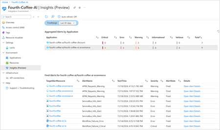 After our Public Preview announcement earlier this earlier, we are excited to share early preview into significant enhancements to the Integration Environment and Application Monitoring experience. These updates are designed to make it easier for you to monitor, trace, and manage your Azure Integration Services (AIS) applications at scale. Note: This capability is in limited Preview and can be accessed via this link - https://aka.ms/aismon/refresh . It will be available publicly in January'25 What’s New Single pane view into the Health of All Applications in Integration Environment Gain a consolidated view of your application's health through Integration Environment: Leverage Azure Alerts to monitor individual resources and view all triggered alerts in one place. Understand the overall health of your application with a single-pane view, helping you stay proactive in identifying and resolving issues. End-to-End Message Tracing Across AIS Resources Using a single correlation ID, you can now trace messages seamlessly across all AIS resources in your application. This enables: A comprehensive end-to-end itinerary of your message flow across resources. Enhanced troubleshooting and diagnostics for complex workflows. Note: We are actively addressing an issue that prevents Service Bus traces from displaying in some scenarios. At-Scale Monitoring for Logic Apps We’ve expanded monitoring capabilities for Logic Apps to support at-scale operations: Health Dashboard: Monitor the health of one or multiple Logic Apps within your application (previously limited to a single Logic App). Bulk Resubmission: Easily select and resubmit multiple Logic App runs in bulk, streamlining operational efficiency. Improved Browsing Experience The Integration Environment now provides a more intuitive browsing experience. Key enhancements include: API Connections in the Integration Application View: Easily locate and monitor API connections within your Logic App and in your integration application. Resource Status Visibility: Quickly check the current status of resources. Plan Details: View detailed information about your plan, including Name and SKU. Customizable Filters: Tailor the columns to display the most relevant information for your monitoring needs. Getting Started This new capability will be available in Public Preview in early January. If you’d like early access, use this link (https://aka.ms/aismon/refresh). Pre-requisites To use this experience completely, you need to use Workspace-based Application Insights resource. All the AIS resources in your Integration application should push logs to the same workspace. When you use the Dashboards, you select the above chosen workspace to power all the visualizations. The dashboards are built using Azure Workbooks and will be customization so that you can extend them based on your business needs. Learn more Single pane view into health of all applications In Integration Environment, the Insights on the menu item will take you to the aggregated view into the health of all applications. This view is built upon Azure Alerts. You will be able to see the health based on the fired alerts. The screen shot below shows each application, and the number of alerts by the Severity level. When you select a row and choose an application, a detailed table view is displayed, providing a drill-down into the alerts triggered by the resources within that application. This centralized view consolidates alerts from various types of Azure Integration Services (AIS) resources, making it easier to monitor and manage them. The table includes details such as the associated resource, the triggered alerts, their severity levels, and a direct link to each alert for more in-depth information. This unified experience simplifies the process of tracking and addressing issues across your application resources. The Open Alert Details link opens gives further details into the specific entities which are in unhealthy state. You can also take an action on the alert here and update the user response and add comments. To summarize, within a single pane you can see the health of your application that includes different AIS resources, drill into the alerts that make up the health of the application. You can even go one step further and update user response. All of this through a in a single pane, across different types of resources, without the need for any context switching. Monitoring Dashboard Enhancements The workbook-based dashboards are accessible through the Insights menu within an application. Under Logic Apps, the Overview page provides an aggregated view of the health of all Logic Apps in the application. From this page, you can drill down to view the health of individual Logic Apps, explore detailed run statuses, and monitor workflows for each Logic App. The trend charts show the runs and their trends over the selected time period. As you are ready to troubleshoot further, the Runs tab gives more details The chart below illustrates the total runs and their pass/fail rates for Logic Apps and their associated workflows. This widget provides a clear visual representation of workflow statuses, helping you quickly identify areas that may require attention. Selecting a row allows you to drill down into the specific runs for the selected Logic App or workflow. The runs for a workflow include all relevant details, with additional insights available in the properties bag to aid further troubleshooting. The table is filterable by run status, making it easier to focus on specific scenarios. Most importantly, it supports resubmission of failed runs, either individually or in bulk. Additionally, each entry includes a unique correlation ID, which tracks the flow across all AIS resources. Selecting a row opens a detailed table showing the AIS processing hops for the message, providing a comprehensive view of its journey through the system. When you select on a row in the runs table, we use this correlation I