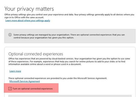 Hi Globally we are using local Office 2016 Enterprise. I would like to do Uncheck/grey-out the option "turn on optional connected experiences." See visual below. From my search this can only be done by GPO. Option 1 below. This can also be configured in the Office2016 / 2019 / 365 ADMX Group Policy files. User > Policies > Admin Templates > Microsoft Office 2016 > Privacy > Trust Centre 1. Allow the use of additional optional connected experiences in Office 2. Allow the use of connected experiences in Office 3. Allow the use of connected experiences in Office that analyze Content939Views0likes1CommentOutlook notification or notification whenever something is attached