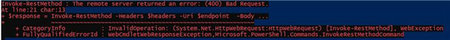 Hello, I would like to be able to change the name of a dataflow using this API: https://learn.microsoft.com/en-us/rest/api/power-bi/dataflows/update-dataflow Here is my code: $body=@{ name = "DTF TEST Pipeline 1.0.1" } Invoke-PowerBIRestMethod -Url "https://api.powerbi.com/v1.0/myorg/groups/8569358a-549c-466a-894c-de113f5c4fb1/dataflows/8774dad3-3f17-4444-b73b-b82cea0812b6" -Method Patch -Body $body However when I run the command I get this error message: Invoke-PowerBIRestMethod : Une ou plusieurs erreurs se sont produites. Au caractère Ligne:12 : 1 + Invoke-PowerBIRestMethod -Url "https://api.powerbi.com/v1.0/myorg/gro ... + ~~~~~~~~~~~~~~~~~~~~~~~~~~~~~~~~~~~~~~~~~~~~~~~~~~~~~~~~~~~~~~~~~~~~~ + CategoryInfo : WriteError: (Microsoft.Power...werBIRestMethod:InvokePowerBIRestMethod) [Invoke-PowerBIRestMethod], AggregateException + FullyQualifiedErrorId : Une ou plusieurs erreurs se sont produites.,Microsoft.PowerBI.Commands.Profile.InvokePowerBIRestMethod Invoke-PowerBIRestMethod : Encountered errors when invoking the command: { "code": "BadRequest", "message": "Bad Request", "details": [ { "message": "Unexpected character encountered while parsing value: S. Path '', line 0, position 0.", "target": "dataflowUpdateInformation" } ] } Au caractère Ligne:12 : 1 + Invoke-PowerBIRestMethod -Url "https://api.powerbi.com/v1.0/myorg/gro ... + ~~~~~~~~~~~~~~~~~~~~~~~~~~~~~~~~~~~~~~~~~~~~~~~~~~~~~~~~~~~~~~~~~~~~~ + CategoryInfo : WriteError: (Microsoft.Power...werBIRestMethod:InvokePowerBIRestMethod) [Invoke-PowerBIRestMethod], Exception + FullyQualifiedErrorId : Encountered errors when invoking the command: { "code": "BadRequest", "message": "Bad Request", "details": [ { "message": "Unexpected character encountered while parsing value: S. Path '', line 0, position 0.", "target": "dataflowUpdateInformation" } ] },Microsoft.PowerBI.Commands.Profile.InvokePowerBIRestMethod890Views0likes1Comment"get-PowerBiWorkspace" giving error like 'incompatible with the array'
