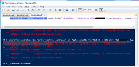 Hello, I have an understanding problem with the Powershell commands regarding Windows Server Backup especially with 'Get-WBBackupVolumeBrowsePath'. The MS page https://docs.microsoft.com/en-us/powershell/module/windowsserverbackup/get-wbbackupvolumebrowsepath?view=win10-ps doesn't help me. Maybe someone can tell me what the correct syntax of the command looks like. Many and best regards reredok2.3KViews0likes3CommentsThe term 'New-MsolServicePrincipalCredential' is not recognized as the name of a cmdlet, function...