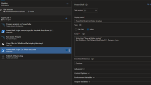 I'm trying to run some PnP PowerShell commands in an Azure Runbook (e.g. Get-PnPContentType, Apply-PnPProvisioningTemplate, etc. ) over a SharePoint site, but it keeps returning the error below: The Push Notifications feature is not activated on the site The correct modules have been imported and it only errors on some commands. Running the commands in a PowerShell window with the same credentials doesn't produce any errors, and activating the 'Push Notifications' feature manually and retriggering the Runbook won't produce any error output, but will say that the Runbook failed to run 3 times.4.2KViews0likes1CommentAzure Pipeline - Powershell Task Output