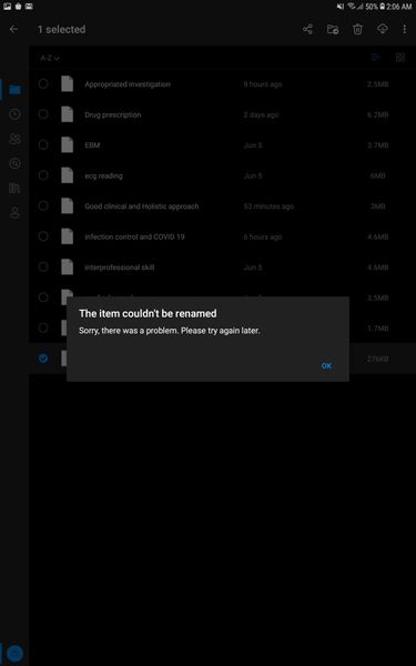 Most RecentMost ViewedMost LikesThe file couldn't be renamed in onedrive application (Andriod). I couldn't rename any files in my onedrive application (Andriod) but it can be changed when using onedrive on browser. I tried it many times but it didn't work. Is there any solution?