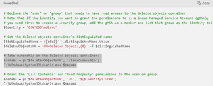 Hi All, Referring to the following step of the Directory services account permission assignment, after obtaining the ownership permissions of the 'Deleted objects' container ACL, it just left as is? How do we revoke this properly? # Take ownership on the deleted objects container: $params = @("$deletedObjectsDN", '/takeOwnership') C:\Windows\System32\dsacls.exe $params Ref - Directory Service account recommendations - Microsoft Defender for Identity | Microsoft LearnQuestion on configuring SAM-R to enable lateral movement path detection