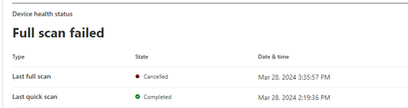 Hi, Trying to come up with a solution to find all devices via Advanced Hunting where a full scan was never successful. The report that can be downloaded via `Defender XDR > Reports > Device Health > Microsoft Defender Antivirus Health` as well as the device health page only provide the result of the last antivirus scan. If a device ran a full scan successfully in the past but the most recent full scan was cancelled the report shows that the full scan failed. Here's an example of what I mean: The device health status shows "Full scan failed" with a failed scan on March 28, 2024 at 3:35:57PM. When querying the device via Advanced Hunting (see query below) I receive the information that a full scan successfully ran on March 28, 2024 at 3:35:36PM. Here's the query I am currently using and I already played around with it a little bit (distinct, summarize). I could export it to Excel and then remove duplicate entries but was hoping that can be done with KQL: DeviceEvents | where ActionType has_any ("AntivirusScanCompleted", "AntivirusScanCancelled") | extend AdditionalFields = parse_json(AdditionalFields) | extend ScanType = AdditionalFields.["ScanTypeIndex"] | where ScanType == "Full" | project Timestamp, DeviceName, ActionType This is the result I would like the query to return. If any device has had an entry for `ActionType == AntivirusScanCompleted` and `ScanType == Full` then all rows for that device should be removed.3.5KViews0likes2CommentsKQL script report last reboot/reset endpoint devices (Workstations/Laptops)