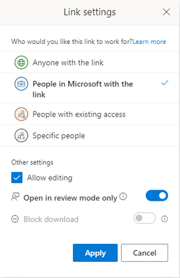 StephenRice and I are excited to announce that the feature for sharing a document to Open in Review Mode Only is now available to 100% of our Production Users! We would love to hear your feedback on the feature or how it might have landed in your organization! When users share a Word document, you’ll find a new option in the Link Settings page to enable the Open in Review mode feature. When users share a Word document, you’ll find a new option in the Link Settings page to enable the Open in Review mode feature. This feature is only supported for Word on the web at this time. Users who open links with these settings in the Word desktop app will see a bar across the top of the client letting them open the file in Word on the web to leave behind tracked changes and comments. Let us know if you have questions, thoughts, would want to see a certain improvement or think it would be specially useful for certain departments in roles in your organization. Thanks, Georges Senior PM, Word1.5KViews1like1Comment