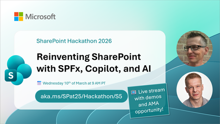 Live stream exploring SharePoint Embedded and how it enables developers and ISVs to build document‑centric applications on top of Microsoft 365 storage. We’ll cover what SharePoint Embedded is, when to use it, and how it differs from traditional SharePoint and OneDrive experiences. This session focuses on real world scenarios for app‑managed content, API‑only storage, and building secure, scalable content apps where files stay inside the customer’s Microsoft 365 tenant. We’ll walk through key concepts like file storage containers, permissions, and how SharePoint Embedded fits into modern application architectures. Topics covered What SharePoint Embedded is and why it exists App‑managed content and API‑only storage patterns Common enterprise and ISV scenarios How SharePoint Embedded fits with Microsoft 365, security, and compliance Practical guidance and next steps for builders Live discussion and AMA included. Ideal for developers, architects, and product teams building custom applications that need Microsoft 365 content capabilities without exposing the SharePoint UI. 📺 Live discussion 💬 Q&A during the stream 🚀 Practical insights for modern SharePoint ✨ Presenters: Steve Pucelik (Microsoft) Marc Windle (Microsoft) 🧑🤝🧑Hosts David Warner Vesa Juvonen (Microsoft) We are excited to invite you to the SharePoint Hackathon 2026, dedicated to crafting engaging experiences using AI and the latest SharePoint features! 💡 Learn more about the SharePoint Hackathon, including official rules, full stream schedule, and more: https://aka.ms/SPat25/Hackathon99Views0likes0CommentsReinventing SharePoint with SPFx, Copilot, and AI | SharePoint Hackathon 2026