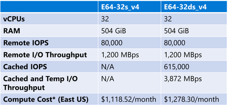 The new Ebdsv5 VM series in preview starting today offers the highest I/O throughput to core ratio in Azure and is ideal for SQL Server workloads and other I/O-heavy workloads like Oracle, Teradata, and SAS. Once the Ebdsv5 series is generally available we expect it to be the flagship Azure VM for SQL Server workloads.17KViews7likes0Comments