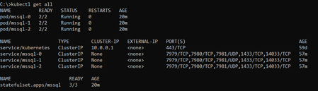 This is a follow-up to my previous blog post I published a while ago titled "Updating SQL Server containers deployed on Kubernetes!" In that blog post, I discussed two approaches that are OnDelete & Rolling options to update your Kubernetes-deployed independent SQL Server container instances. In this article, we will go a step further and upgrade SQL Server containers running SQL Server 2019 to SQL Server 2022, with High Availability (HA) configured using Always On availability groups and the cluster stack provided by DH2i. As documented in this article: "Deploy availability group with DH2i for SQL Server containers on AKS." configuring Always On availability group for SQL Server containers with DH2i is a fully supported solution stack for SQL Server HA. We'll use the "OnDelete” upgrade option today, but you can also use the Rolling upgrade option. As discussed in the previous blog, when the .spec.updateStrategy.type of a StatefulSet is set to RollingUpdate, the StatefulSet controller will delete and recreate each Pod in the StatefulSet. It will update each Pod one at a time, in the same order as Pod termination (from the largest ordinal to the smallest). As a result, if you have three Pods, namely <yourpodname>-0 (Secondary), <yourpodname >-1 (Primary), and <yourpodname>-2 (Secondary), you must make <yourpodname>-0 the primary because it has the least ordinal index and will be updated last when you choose rolling upgrade. As you may be aware, when performing rolling upgrades for availability groups, the best practice guide requires you to first upgrade the secondaries, then perform a failover from the primary to any of the upgraded secondaries. Finally, upgrade the old primary, so in this case, making <yourpodname>-0 the primary ensures that it is updated after you have updated all the secondaries (<yourpodname>-2 and <yourpodname>-1) and performed the failover. Deploying SQL Server containers and configure Always On availability group: As previously stated, we will use the OnDelete upgrade option for this blog. I'm using the script below to deploy three SQL Server replicas as containers and to enable high availability with the DH2i cluster stack. DH2i’s DxEnterprise will be deployed with sidecar architecture as described here: Deploy availability groups with DH2i DxEnterprise sidecar on Kubernetes - SQL Server | Microsoft Learn. apiVersion: v1 kind: Service metadata: name: mssql-0 spec: clusterIP: None selector: statefulset.kubernetes.io/pod-name: mssql-0 ports: - name: dxl protocol: TCP port: 7979 - name: dxc-tcp protocol: TCP port: 7980 - name: dxc-udp protocol: UDP port: 7981 - name: sql protocol: TCP port: 1433 - name: listener protocol: TCP port: 14033 --- apiVersion: v1 kind: Service metadata: name: mssql-1 spec: clusterIP: None selector: statefulset.kubernetes.io/pod-name: mssql-1 ports: - name: dxl protocol: TCP port: 7979 - name: dxc-tcp protocol: TCP port: 7980 - name: dxc-udp protocol: UDP port: 7981 - name: sql protocol: TCP port: 1433 - name: listener protocol: TCP port: 14033 --- apiVersion: v1 kind: Service metadata: name: mssql-2 spec: clusterIP: None selector: statefulset.kubernetes.io/pod-name: mssql-2 ports: - name: dxl protocol: TCP port: 7979 - name: dxc-tcp protocol: TCP port: 7980 - name: dxc-udp protocol: UDP port: 7981 - name: sql protocol: TCP port: 1433 - name: listener protocol: TCP port: 14033 --- apiVersion: apps/v1 kind: StatefulSet metadata: name: mssql spec: serviceName: "mssql" replicas: 3 podManagementPolicy: Parallel selector: matchLabels: app: mssql template: metadata: labels: app: mssql spec: securityContext: fsGroup: 10001 containers: - name: sql image: mcr.microsoft.com/mssql/server:2019-latest env: - name: ACCEPT_EULA value: "Y" - name: MSSQL_ENABLE_HADR value: "1" - name: MSSQL_SA_PASSWORD valueFrom: secretKeyRef: name: mssql key: MSSQL_SA_PASSWORD volumeMounts: - name: mssql mountPath: "/var/opt/mssql" - name: dxe image: dh2i/dxe env: - name: MSSQL_SA_PASSWORD valueFrom: secretKeyRef: name: mssql key: MSSQL_SA_PASSWORD volumeMounts: - name: dxe mountPath: "/etc/dh2i" volumeClaimTemplates: - metadata: name: dxe spec: accessModes: - ReadWriteOnce resources: requests: storage: 1Gi - metadata: name: mssql spec: accessModes: - ReadWriteOnce resources: requests: storage: 1Gi Here is how the cluster looks after I deploy the above script and run the commands described in the document to configure SQL Server Always On availability groups. In total, I have three pods, each pod running two containers, one SQL Server container and the other DH2i sidecar container to provide the required cluster stack for Always On availability groups. I have three SQL Server instances: mssql-0 (Primary), mssql-1 (Secondary), and mssql-2 (Secondary). When you look at the resources using SSMS and the Always On dashboard here is how the resources are configured: As we used the sidecar architecture during the deployment, we will now upgrade the SQL Server instances from SQL Server 2019 to SQL Server 2022 independently of the DH2i containers running on the same pod. Upgrade the SQL Server 2019 instances to SQL Server 2022: To begin the upgrade process, use the command below to change the update strategy on the statefulset deployment from Rolling Upgrade to OnDelete upgrade. C:\>kubectl patch statefulset mssql -p "{\"spec\": {\"updateStrategy\": {\"type\": \"OnDelete\",\"rollingUpdate\": null}}}" statefulset.apps/mssql patched # Let us now confirm that the preceding command was successful and that the Update strategy has been changed to the OnDelete option. C:\>kubectl describe statefulset mssql Name: mssql Namespace: default CreationTimestamp: Tue, 25 Apr 2023 16:48:58 +0530 Selector: app=mssql Labels: <none> Annotations: <none> Replicas: 3 desired | 3 total Update Strategy: OnDelete Pods Status: 3 Running / 0 Waiting / 0 Succeeded / 0 Failed Pod Template: Labels: app=mssql Containers: sql: Image: mcr.microsoft.com/mssql/server:2019-latest .. .. .. With this, we can now up