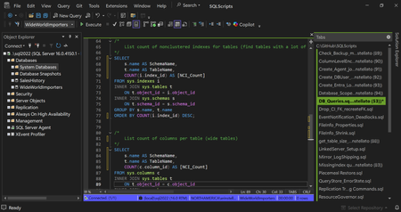 The SQL Tools team, in partnership with Visual Studio team, is thrilled to announce the release of SQL Server Management Studio 21 Preview 1, which is based on Visual Studio 2022 (17.13.0 Preview 1). I often state, “It takes a village,” and SQL Server Management Studio (SSMS) 21 is no exception. We initiated work for this release after making SSMS 20.0 available in March. The teams committed significant time and energy to bring SSMS 21 Preview 1 to completion and land a November release. We have rebuilt SSMS from the ground up and are excited to bring it into a modern state and address many long-standing customer requests; we've linked the feedback items below for those interested. Download SSMS 21 Preview 1 What's new As a result of SSMS 21 becoming a Visual Studio-based solution, SSMS now supports 64-bit, is available via a modern installer, and offers automatic updates. You can read more about the mechanics of the Visual Studio installer in the documentation. Thanks to the Visual Studio team, we will offer two channels for SSMS 21: Preview and Release. The Preview channel is currently the only available channel. Once SSMS 21 is Generally Available (GA), it will be available through the Release channel, and we will use the Preview channel to share early builds of future releases for those of you who like to stay on the cutting edge. A review of the release notes may suggest there isn’t a whole lot that’s new in SSMS 21, which is misleading. Two features that users have been asking to see for a very long time are now available: Git integration and dark theme. Git integration has always been an integral part of Visual Studio, and we are happy to bring it back to SSMS users. As noted in last week’s post, having this integration in SSMS 21 lays the groundwork to bring SQL projects to SSMS. The SQL projects team is focused on the current preview of SDK-style projects, which is work that must be completed before they can evaluate what needs to be done for support in SSMS. In the SSMS Roadmap blog post from March, I stated that we committed to determining the engineering effort to implement dark theme. Once we had an estimate of what it would cost, it felt like we had two options: halt all work on SSMS to implement dark theme, or never implement dark theme. Multiple members of the community suggested that we implement dark theme over time, starting with the most-used dialogs and then systematically working through all the dialogs. We made the decision to take that approach, with dark theme available initially for Object Explorer, the Query Editor and Results pane, and Template Explorer. If you enjoy dark theme and want to provide input as to what dialogs we should theme next, please try out SSMS 21 via the Preview channel and comment on this feedback item with your input. While our primary goal for SSMS 21 is to achieve parity with SSMS 20 (but obviously on Visual Studio 2022, with a new installer, etc.), we have been able to make other improvements. Some of those are thanks to Visual Studio 2022, others are community requests: Always Encrypted Assessment Support for vertical tabs in the editor (on the top right of the editor window, you’ll see a small gear icon, which will bring up the placement options) Additional options for tabs and windows (available in Tools > Options > Environment > Tabs and Windows) such as colorizing documents by project or file type, setting the minimum and maximum tab width, and more The ability to customize the font and background color for cells in the results gride that contain NULL values Create logins and users for Azure SQL database in the UI New page in the database properties dialog for Database Scoped Configuration options Language support for Czech, Polish, and Turkish What's fixed We also implemented a few bug fixes in this release. Most notably, users of Registered Servers and Central Management Servers (CMS) can now save connection settings, such as Trust Server Certificate. We also addressed a couple issues around SSMS hanging when trying to connect to an Azure SQL Database, and you type in the incorrect database name in the database dropdown, or the user doesn’t have permissions to all the databases on the logical server, or the database has been deleted and you try to connect to it. What's missing There are a lot of changes in SSMS 21, but when you open it for the first time, it has the familiar look of the application you’ve been using for years. We do have a few known issues in this preview, documented separate from the release notes. It’s important to note that SSMS 21 Preview 1 does not have support for Analysis Services and Integration Services, and therefore also does not have support for Maintenance Plans. We are working with the respective teams to bring these features back to SSMS 21 in a later preview. You’ll also likely notice some strings that reference Visual Studio – we are working through that list and hope to have them updated in the next preview. What's next Whew. We’re not done! There are additional projects that are in progress and will be available in later previews: Support for roaming settings and consolidation of settings Improving the startup time for SSMS Improving the Azure authentication experience New connection experience Format JSON output in the results pane Resolve the issue with SSMS forgetting passwords We've also added our roadmap to the documentation, which will update with major releases. Copilot and Extensions Last week we also announced that Copilot in SSMS will be available in Private Preview, therefore it is not available in this public preview of SSMS 21. If you would like to participate in the private preview, you can indicate your interest here. Copilot in SSMS will be an opt-in experience, available as an extension. On the topic of extensions, any third-party extensions for SSMS will need to be updated to 64-bit to work with SSMS 21. This may not be a trivial process for some indiv