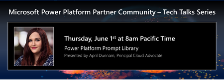 Join us on Thursday, June 15th at 8am Pacific time as Dewain Robinson, Principal Program Manager shares the latest updates with Generative Answers in Power Virtual Agents. We hope you'll join us! Call to Action: Click on the link to save the calendar invite: https://aka.ms/TechTalksInvite View past recordings (sign in required): https://aka.ms/TechTalksRecording Get started with the adoption tools here687Views0likes0CommentsTech Talks Presents: Power Platform Prompt Library | June 1st