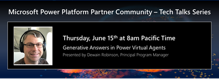 Join us on Thursday, May 18th at 8am Pacific Time as Ken Auguillard, Principal Program Manager, shares what's new and what's coming in Power Platform governance, security, compliance, and risk management. We hope you'll join us! Call to Action: Click on the link to save the calendar invite: https://aka.ms/TechTalksInvite View past recordings (sign in required): https://aka.ms/TechTalksRecording Get started with the adoption tools here747Views1like0CommentsTech Talks Presents: Generative Answers in Power Virtual Agent | June 15th