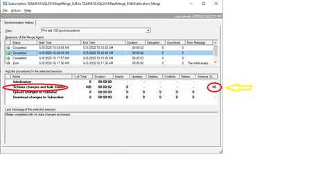 Recently worked on an interesting case. Customer had an existing Merge Replication and it was working fine. They added a new article to the existing Publication and ran the Snapshot Agent. Now Every time Merge agent runs we see that Schema changes were getting re-applied. At the start of a synchronization, the schemaversion of the subscription is checked against sysmergeschemachange by the Merge Agent, and schema changes are applied to the subscriber accordingly. Ran these queries on the subscriber >>> select max(schemaversion) from sysmergeschemachange --22 select schemaversion, pubid, subid from sysmergesubscriptions where pubid<>subid schemaversion pubid subid 15 A0B0FAA8-22B9-4CC5-8AED-547F2EBCEB83 85CD9161-5659-42CC-A501-BB43072B0045 Here we have new schema versions after 15. So we will apply all the schema changes until schemaversion becomes 22. What we saw was schemaversion was not getting updated on the subscriber. It remained 15 after every Merge agent completion. That was the reason schema changes were getting applied repeatedly. We Checked what profile is used by the Merge agent. >>> Right click on the subscription and click on Agent Profile: In this case we are using "High Volume Server to Server Profile" and with this ParallelUploadDownload is set to 1. ParallelUploadDownload is a deprecated feature. There is a known issue where we don’t update schema water marks if ParallelUploadDownload is set to 1. We changed Merge agent profile to use "Default agent profile" or change Merge agent Job and add "-ParallelUploadDownload 0". Ran the Merge agent again. Now the schema watermark was updated successfully on the subscriber and the schema changes were not getting reapplied. select max(schemaversion) from sysmergeschemachange --22 select schemaversion, pubid, subid from sysmergesubscriptions where pubid<>subid schemaversion pubid subid 22 A0B0FAA8-22B9-4CC5-8AED-547F2EBCEB83 85CD9161-5659-42CC-A501-BB43072B00452.1KViews0likes0Comments