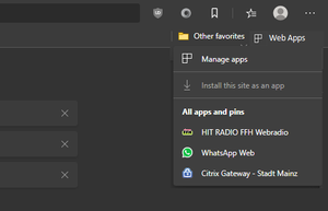 For opening my web apps from within MS Edge I have to use the "settings & more" menu or the site "edge://apps". Please add ways to open the web apps quickly from within MS Edge. My Ideas for a quick acces to web apps: 1. Having an folder for the web apps in the favorites bar nearby the folder "Other favorites". 2. If the user is typing the url of an installed web app into the url bar show the the installed web app as result. 3. Having a fixed URL syntax for opening the installed web apps. (For example: "edge://apps/KEYWORD) Then the user can generate own links to their web apps and open them via typing the url. If you also miss or like this feature pleas feel free to comment or giving likes. (This feature request was also sent via feedback button within Microsoft Edge.)1.2KViews0likes3Comments[Feature request] Web Apps (PWA) - Option to enable/ disable tabbed web apps