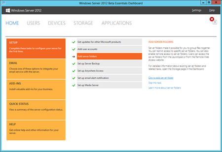 First published on TechNet on Jul 26, 2012 [Today’s post comes to us courtesy of Rong Yu from Windows Server Essentials Team] As Joe mentioned in a previous blog post, one of the key capabilities of Windows Server 2012 Essentials (Essentials) is the flexibility of choosing different types of email services.Get Started with the Dashboard in Windows Server 2012 Essentials